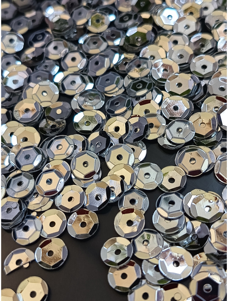 Паєтки грань круглі. Розмір 6 мм. срібло. паковання — 5 грамів