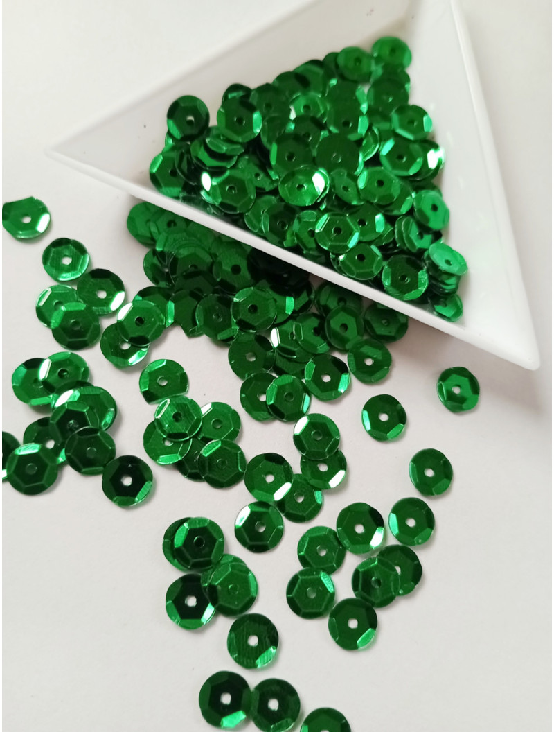 Паєтки грань круглі. Розмір 6 мм. зелені. паковання — 5 грамів