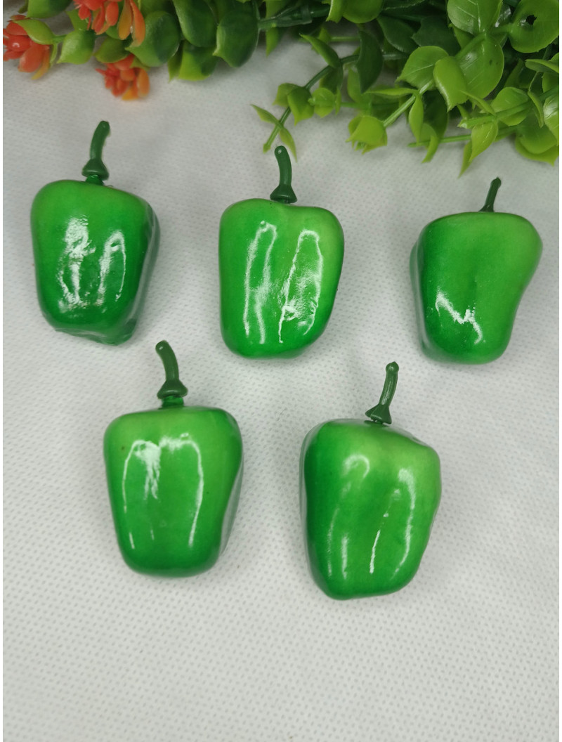 Перець зелений кубічний міні з хвостиком/5 см Набір реалістичних муляжів фруктів — ідеальне рішення для декору інтер'єру, фотозйомок, вітрин магазинів або навчальних цілей. Кожен фрукт виготовлений з якісного, безпечного матеріалу (ПВХ, полімер або пінопласт) і має детальне опрацювання текстури, кольору та форми, що робить його майже не відрізним від справжнього.