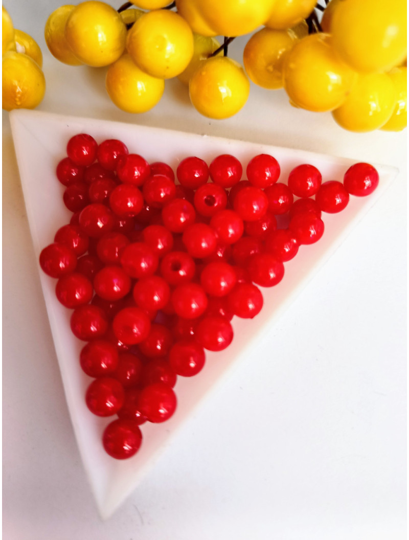 Пластикові намистини 6 мм/червоний/10 грамів (прим.100 шт.)