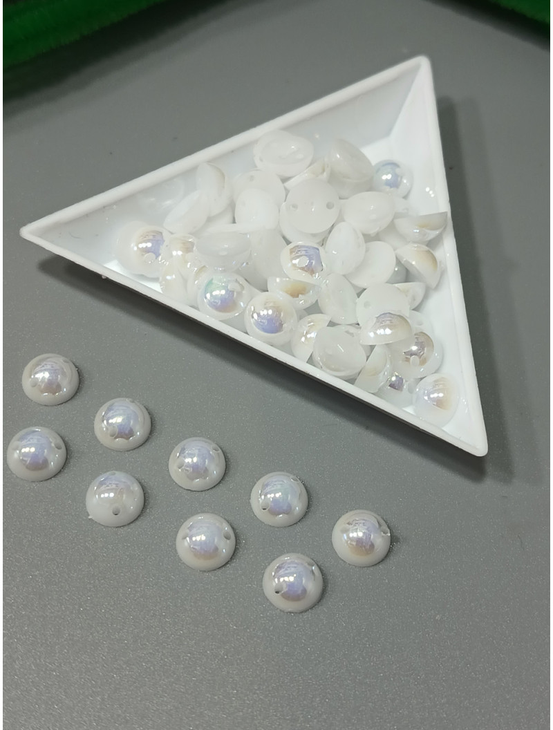Полусуни пришивні/8мм/10 Грам (прим.70 шт.)/білий з АБ Напівтвердіни (полубусини) — це декоративні елементи сферичної форми з плоскою зворотною стороною, що полегшує їхнє кріплення. Вони широко використовуються для декору, рукоділля та створення аксесуарів.
