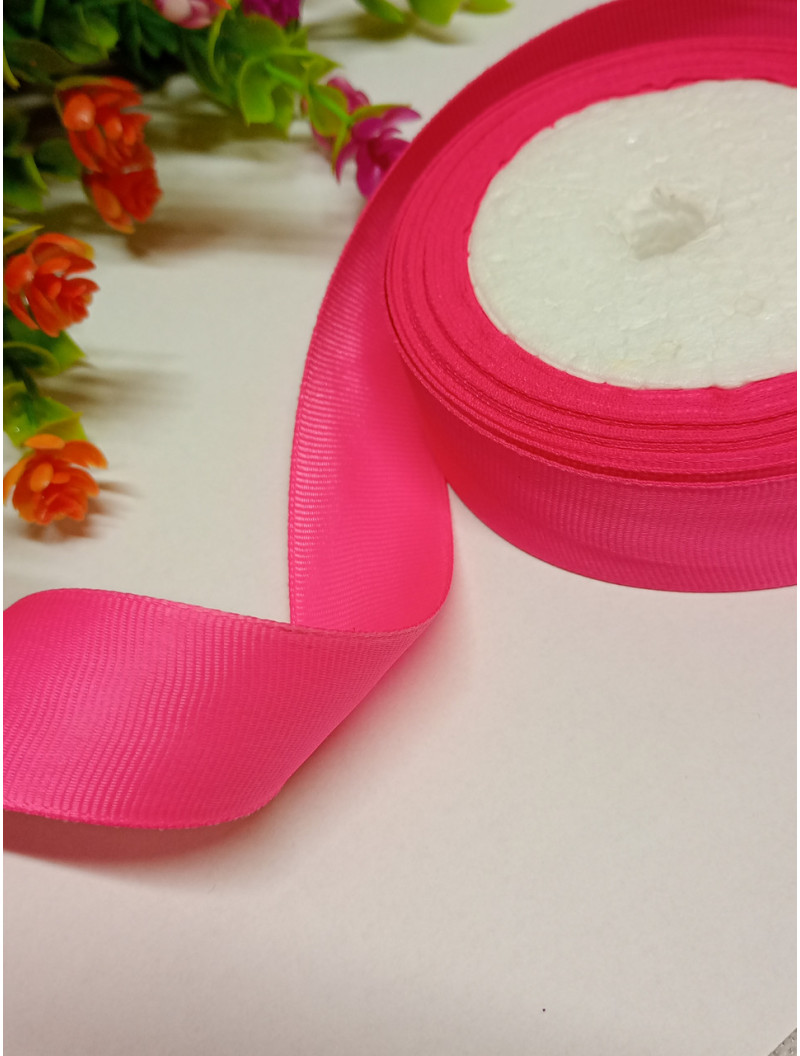 Репсова стрічка/ 2,5 см/рожевий неон/1 метр