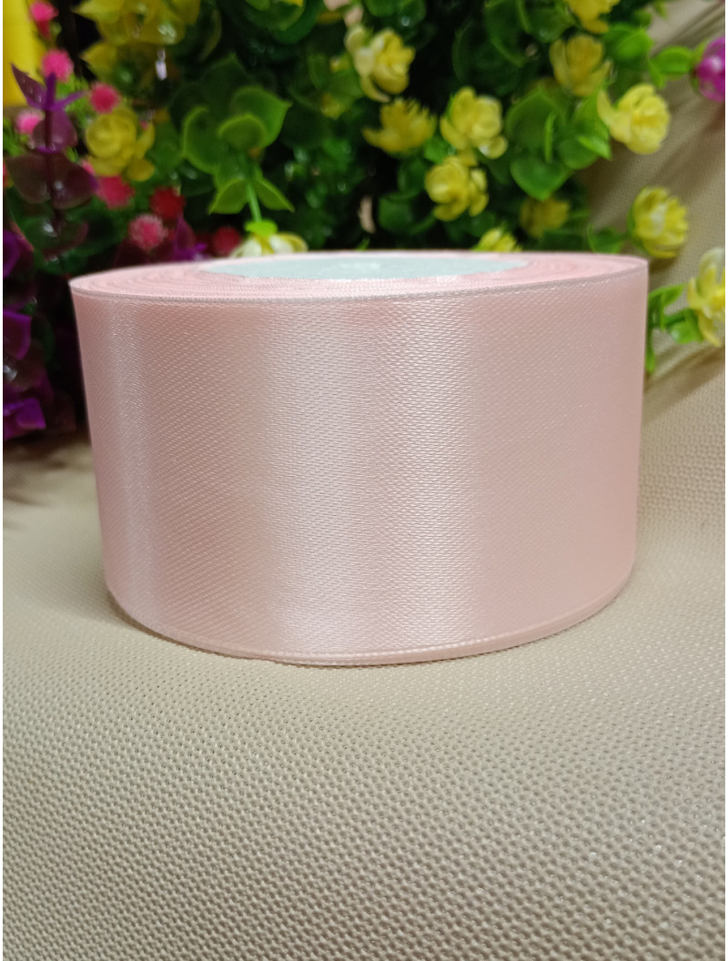 Атласная лента/ 5 см/ 23 метра/ бледно розовый