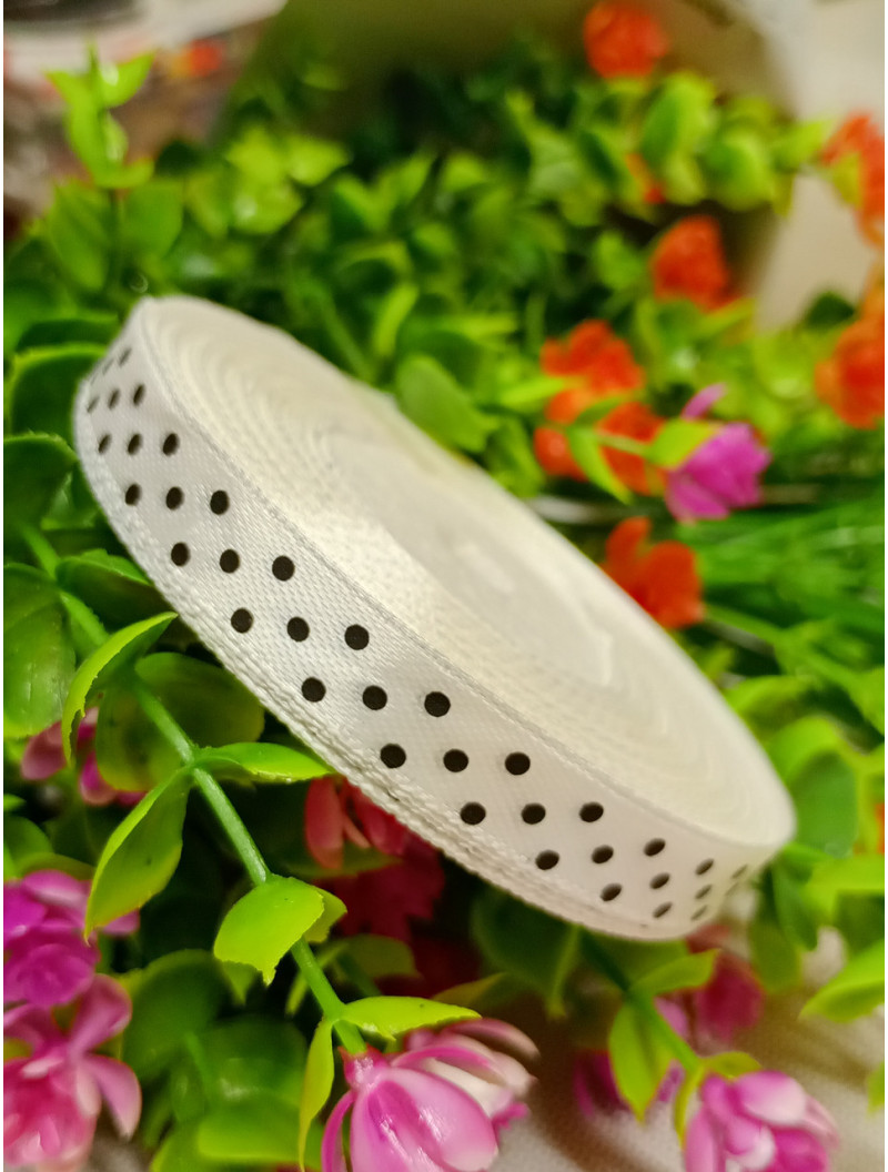 Атласная лента "горох" / белый / 1 см / 23 метра