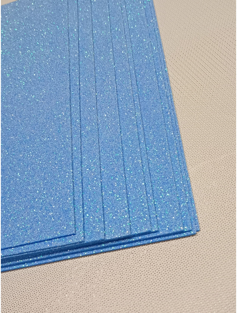 Фоамиран глиттерный с клеевой / 20×30 см / голубой 2