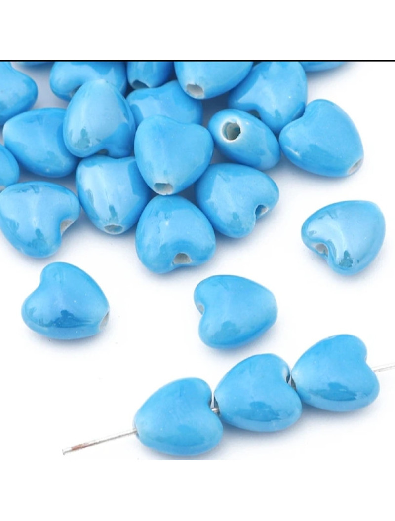 Керамическая бусина "сердце" Размер 10 мм. Цвет голубой. Цена указана за 1 шт.