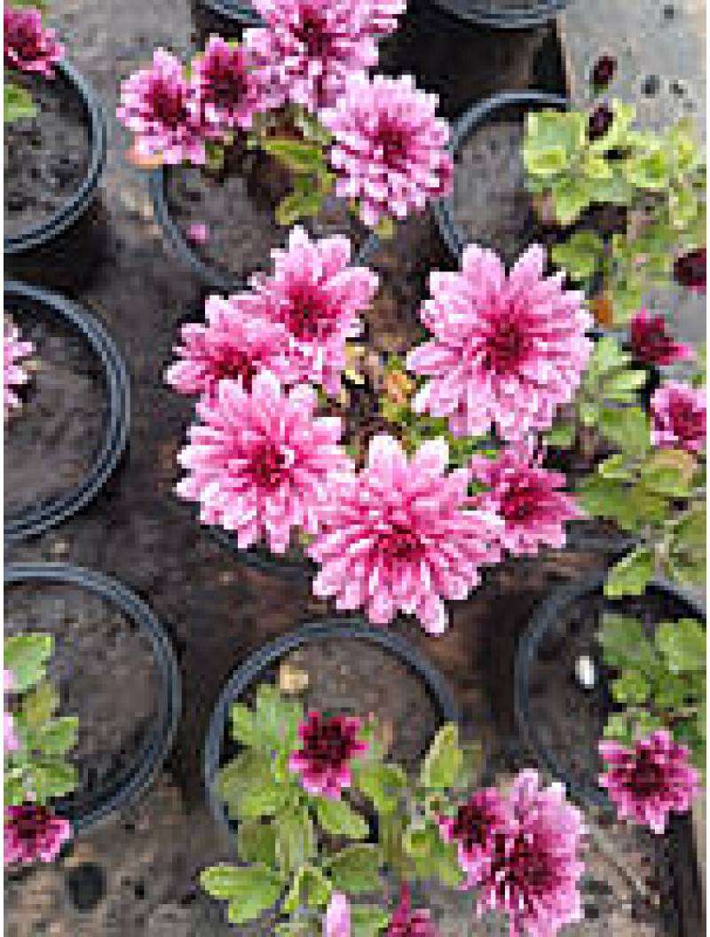 Маленький кустарник хризантемы, малиновый, в стаканчике.