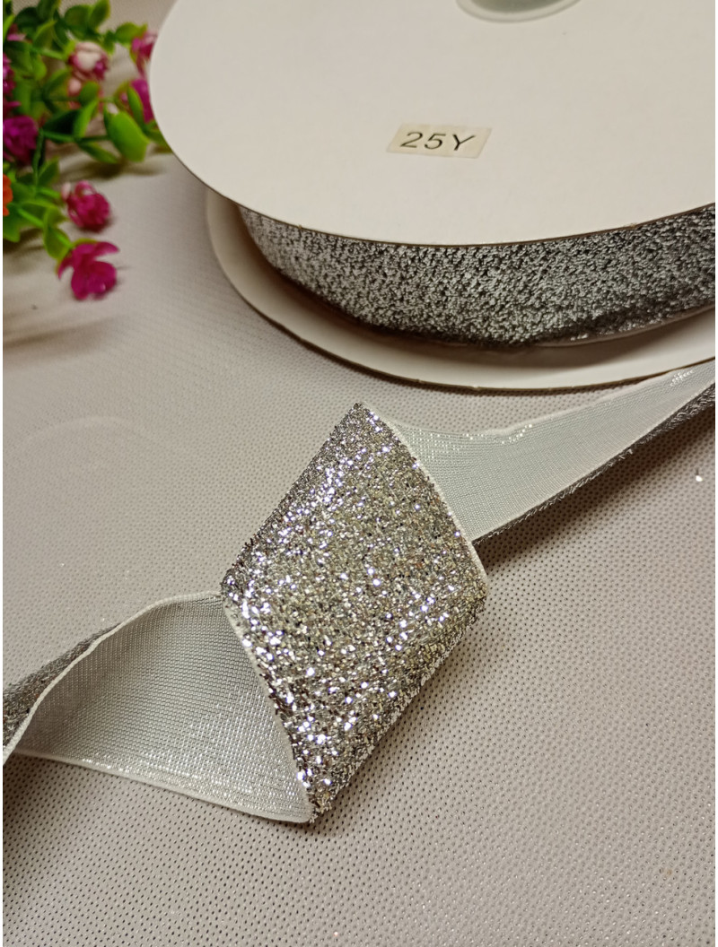 Бархатная лента с люрексом / 4 см / серебро / 1 метр