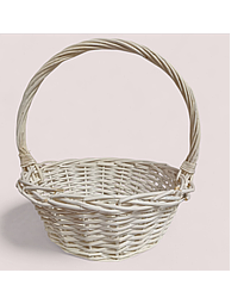 С дефектом ! Плетёная корзина / круглая / белая / диаметр 28 см высота 30 см