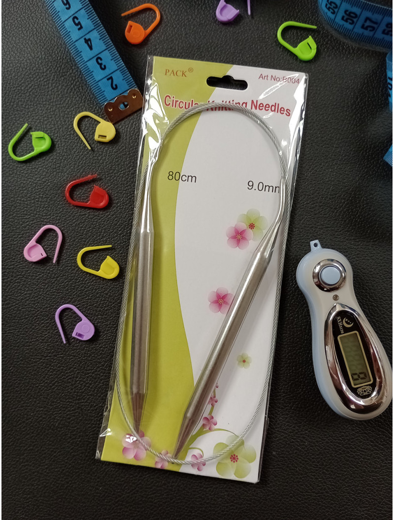 Спиці для в'язання металеві на тросику. Розмір — 9 мм Довжина 80 см.