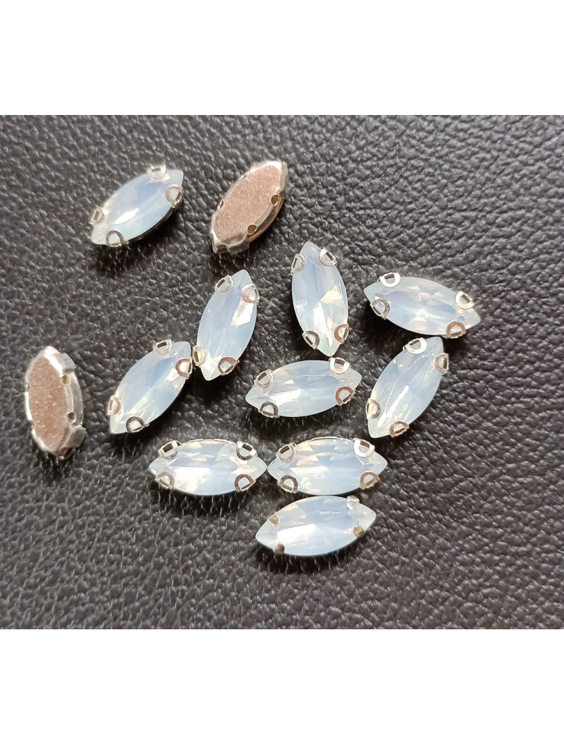 Страз (акрил) у металевій оправі. Розмір 7*15 мм. Колір білий опал