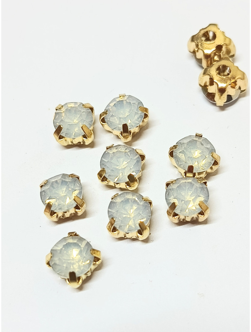 Страз (акрил) у золотій металевій оправі. Розмір 6 мм. Колір білий опал