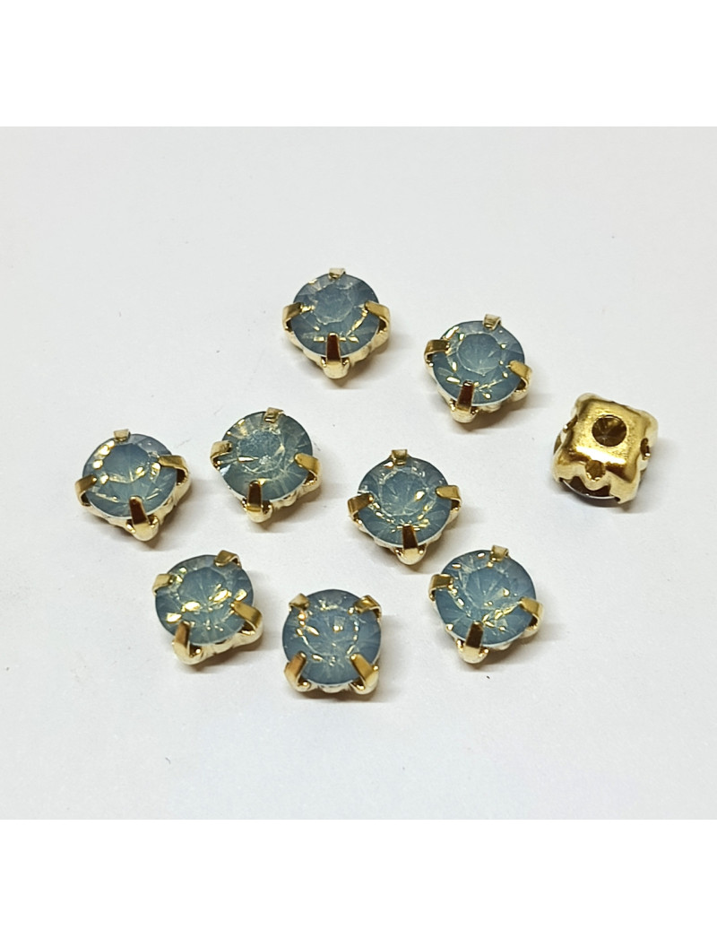 Страз (акрил) у золотій металевій оправі. Розмір 6 мм. Колір блакитний опал