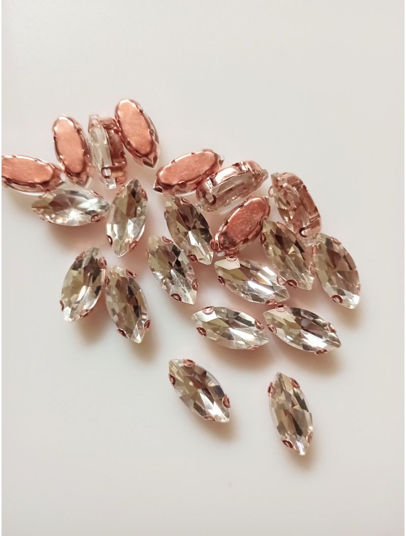 Страз (скло) у рожевій металевій оправі. Розмір 7×15 мм. Колір прозорий