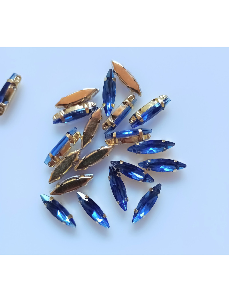 Страз (скло) у Золотій металевій оправі. Розмір — 4×15 мм. Колір синій 5 шт.