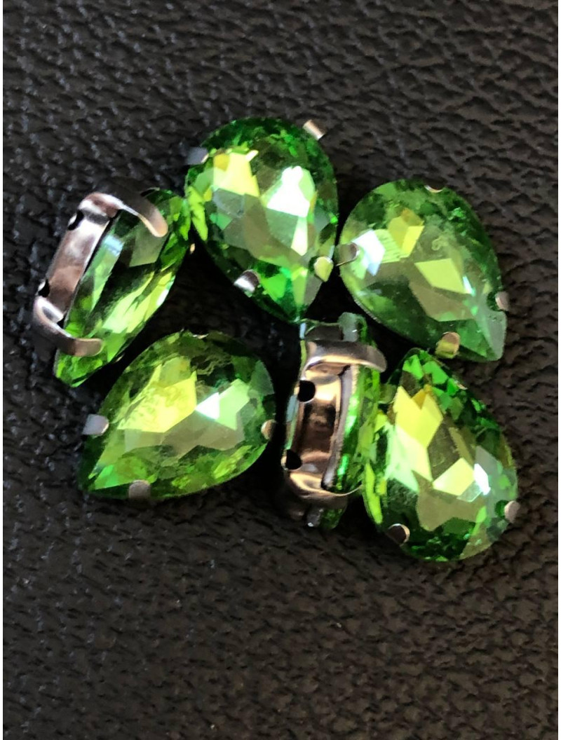 Страз (скло) в металевій оправі. Розмір  10×14 мм. Колір  світло-зелений
