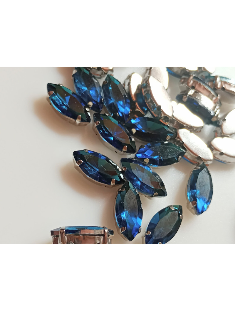 Страз (скло) в металевій оправі. Розмір 7×15 мм. Колір аквамарин