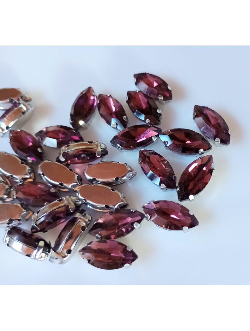Страз (скло) в металевій оправі. Розмір — 7×15 мм. Колір баклажановий