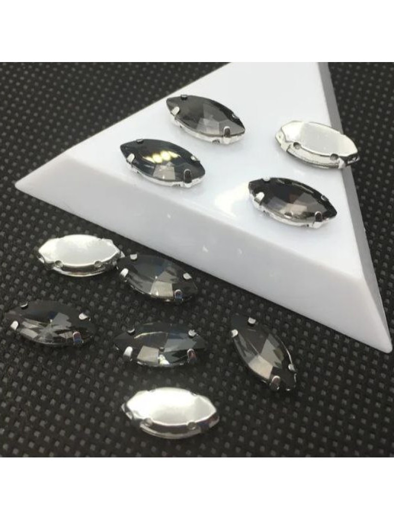 Страз (скло) в металлевій основі. Розмір 7*15 мм. Колір - графітовий