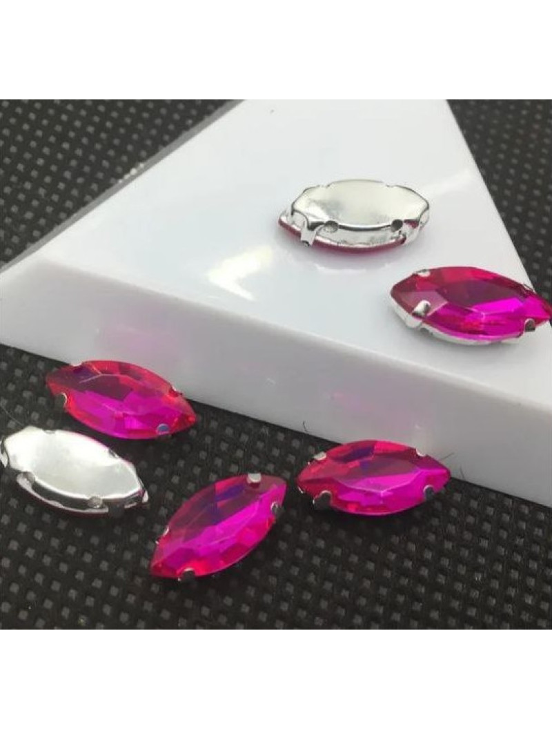 Страз (скло) в металевій оправі. Розмір — 7×15 мм. Колір малиновий