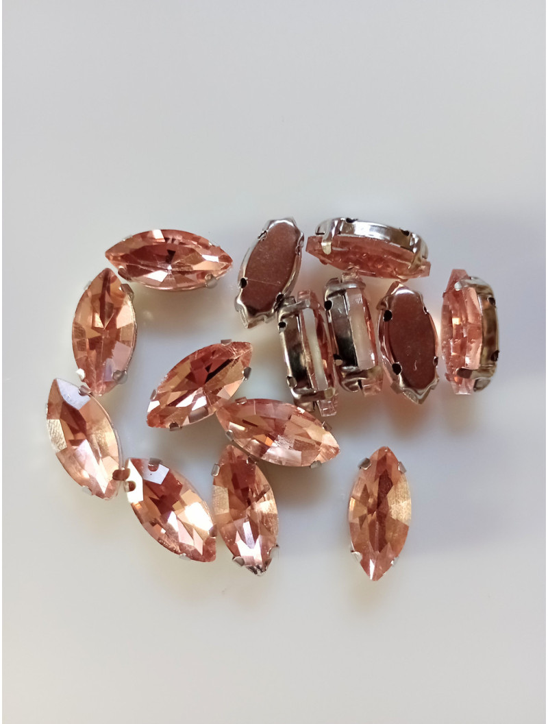 Страз (скло) в металевій оправі. Розмір 7×15 мм. Колір персиковий