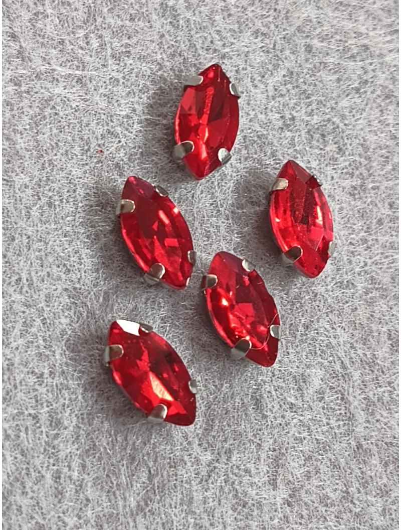 Страз (скло) в оправі/5×10 мм/червоний/5 шт.