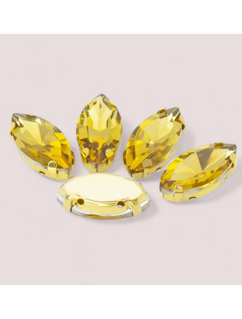 Страз (скло) в золотій оправі/5×10 мм/жовтий/5 шт.