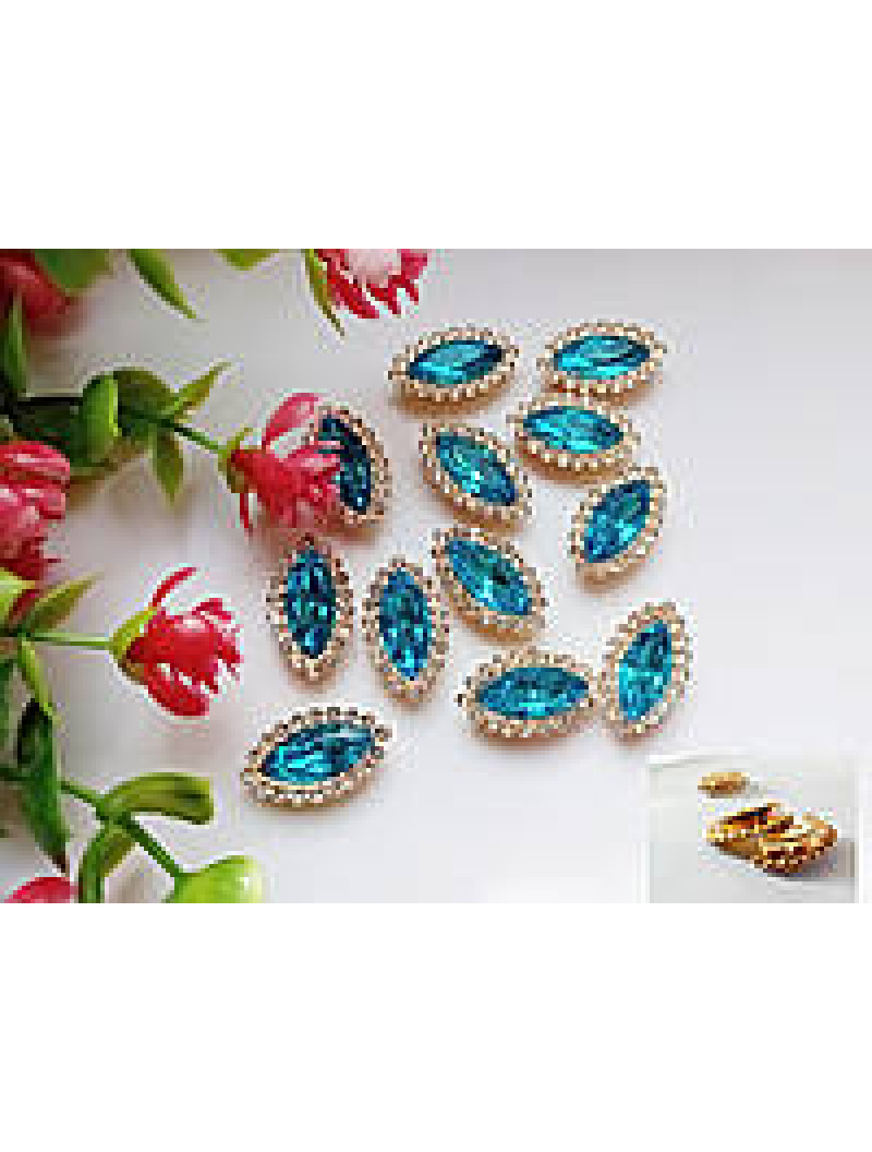 Стразовий декор. Розмір 20×12 мм. Колір блакитний. Ціна вказана за 1 шт.