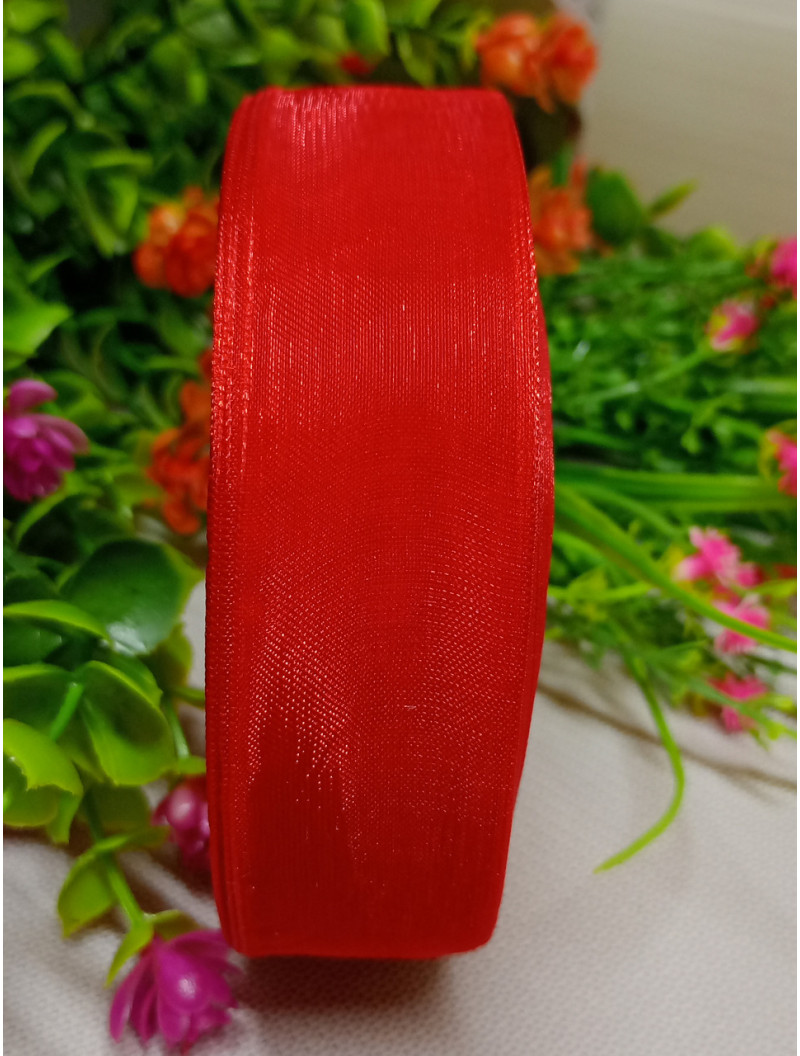 Стрічка органза/2.5 см/червоний/46 м/