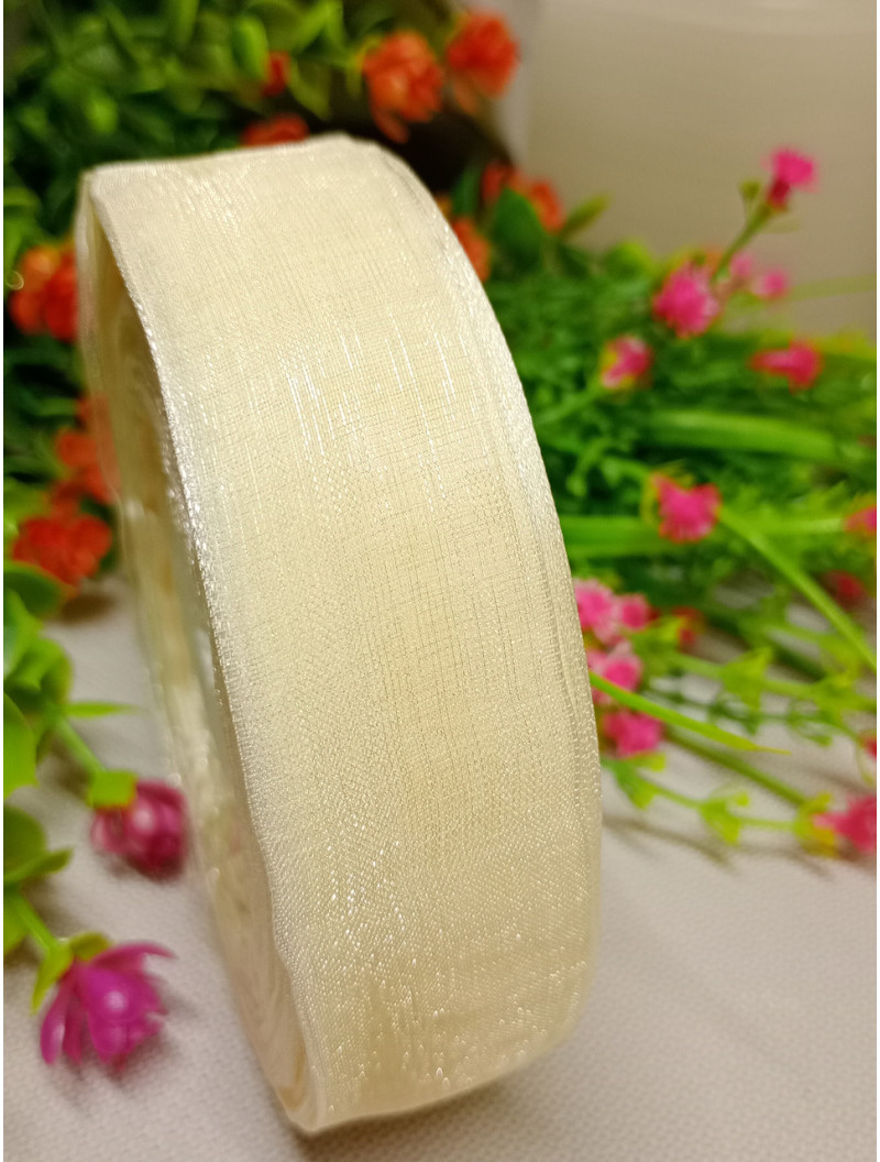 Стрічка органза / 2.5 см / молочний / 46 м