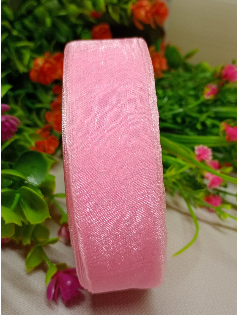 Стрічка органза/2.5 см/рожевий/46 м/
