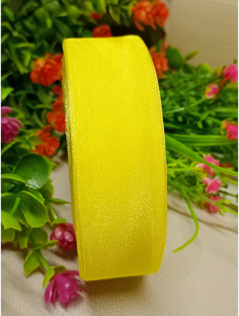 Стрічка органза / 2.5 см / жовтий / 46 м