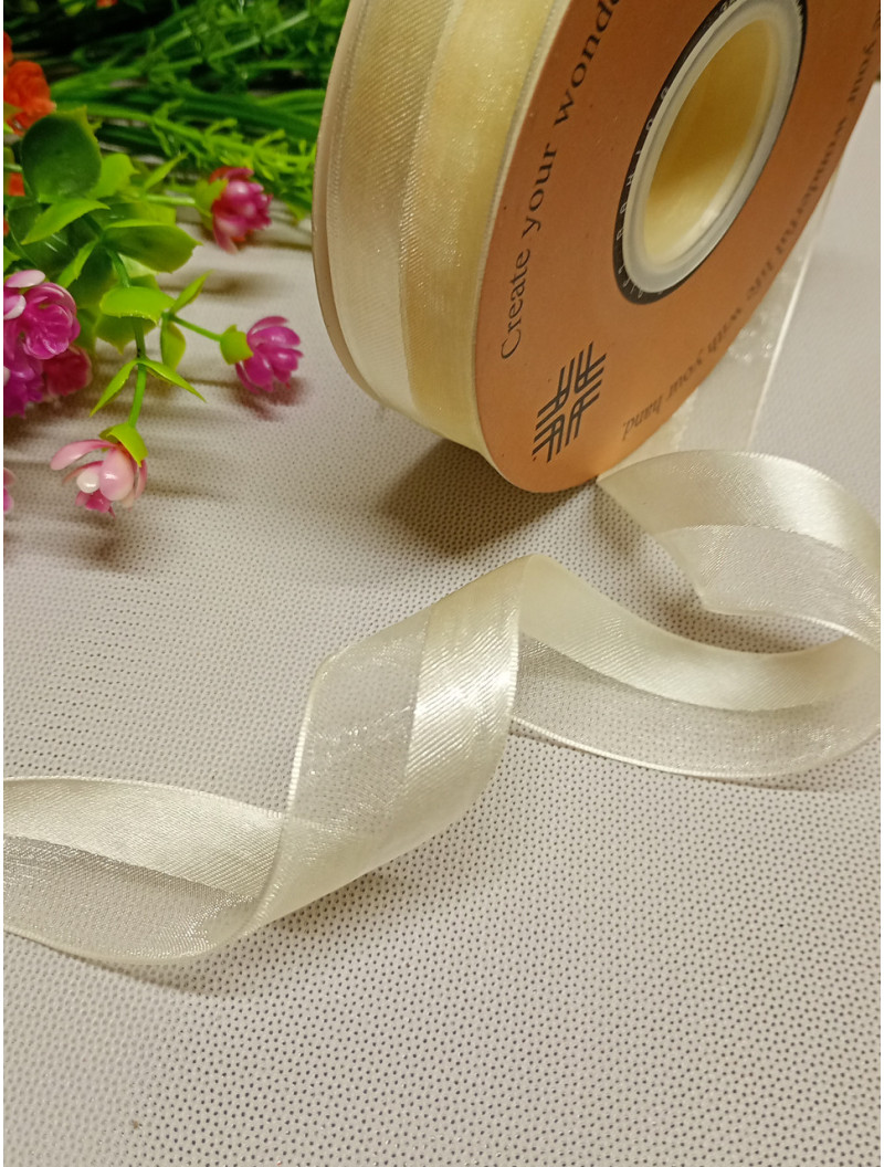Стрічка органза + атлас/ молочний/2.5 см/1 метр