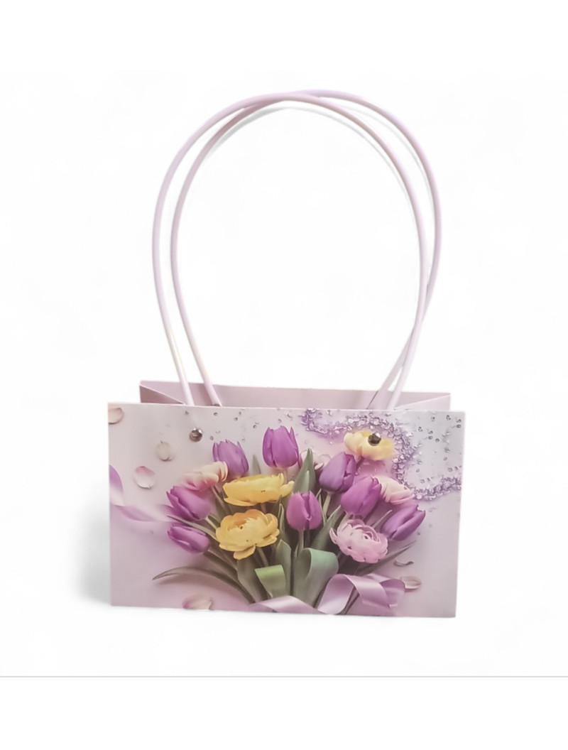 Сумка для квітів/ квадрат/Тюльпани, фіолетовий. 22×13.5×33 см