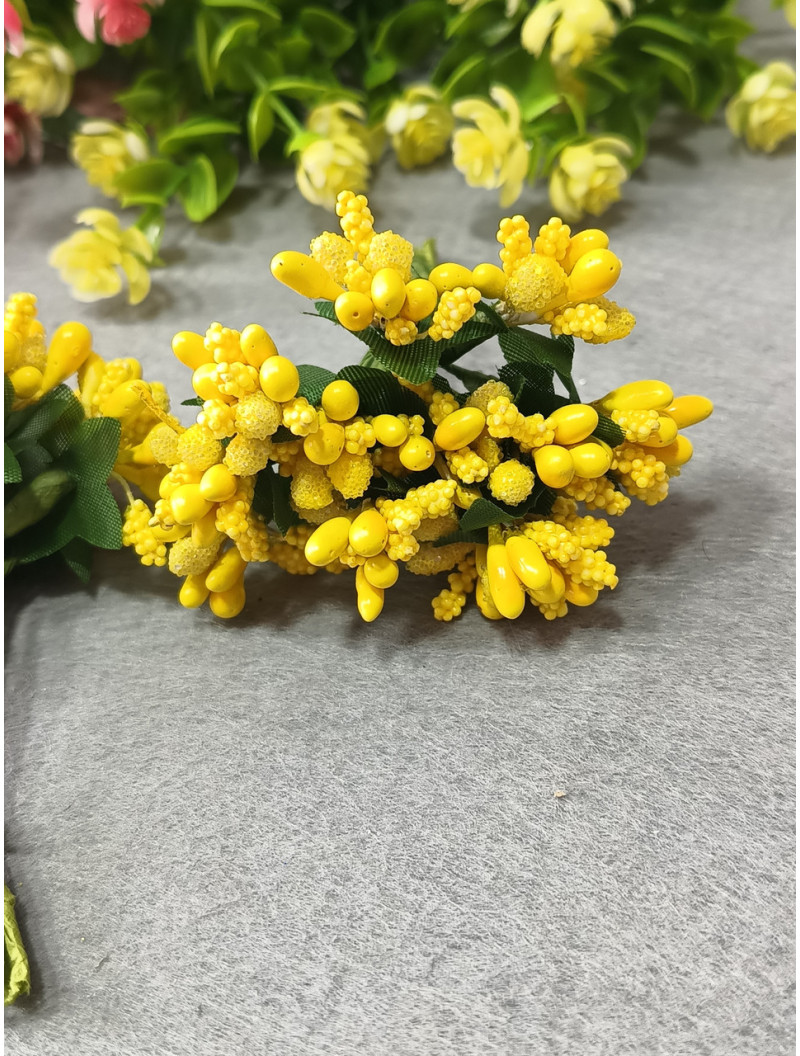 Тичинки "незабудка" на дроті з листиками. Ціна за букет. Колір — жовтий